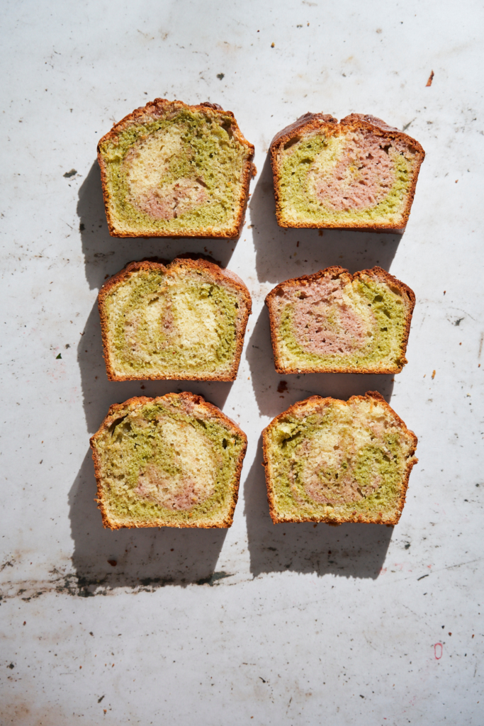 Matcha and Strawberry Marble Cake