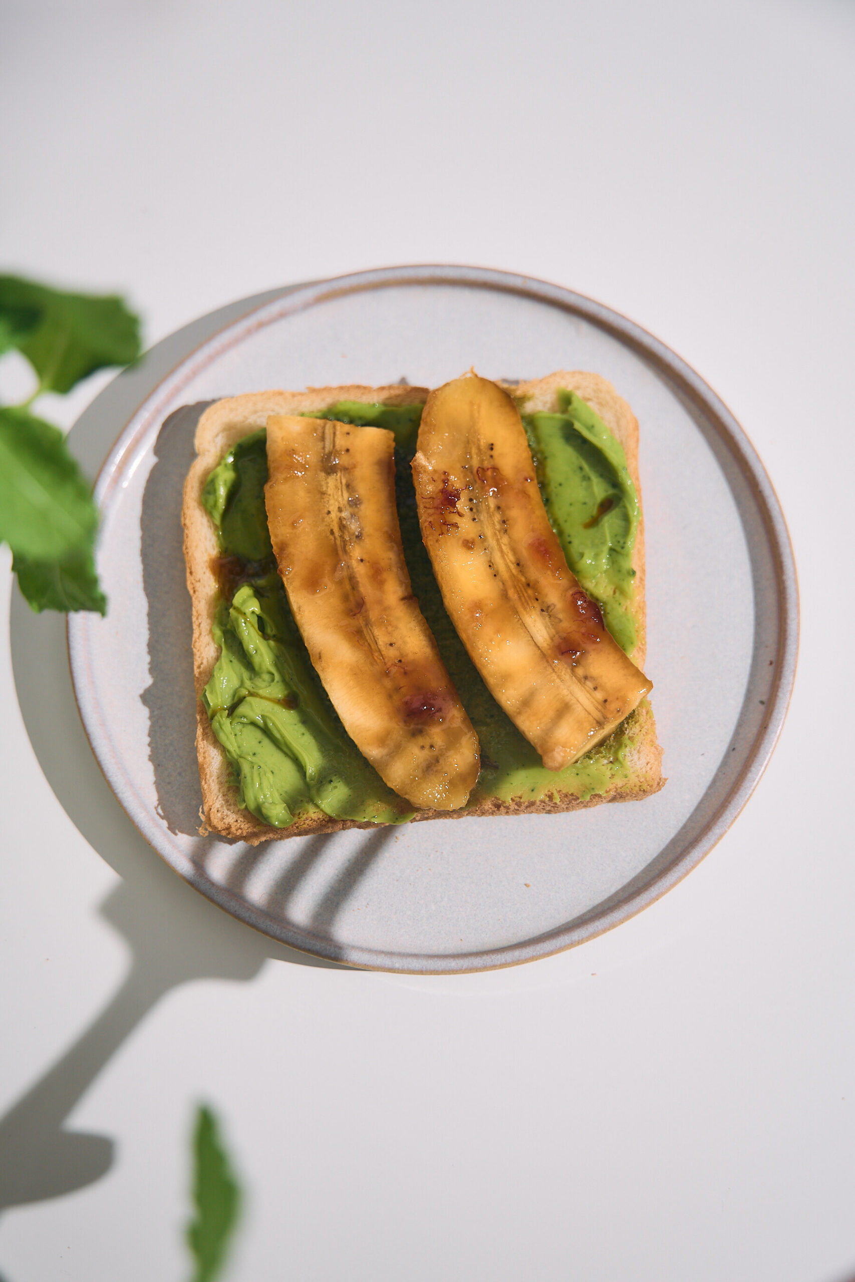 - Spread a generous layer of matcha butter over the warm toast. Top with caramelized banana slices. For extra flavor, sprinkle with a pinch of salt, sesame seeds, chopped nuts, or a drizzle of maple syrup. Serve immediately.