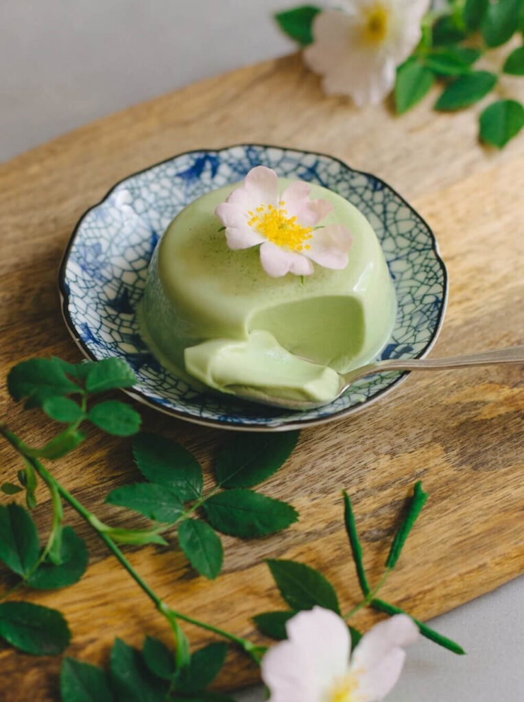 - Serve matcha green tea panna cotta with fresh flowers or your favourite fruits.