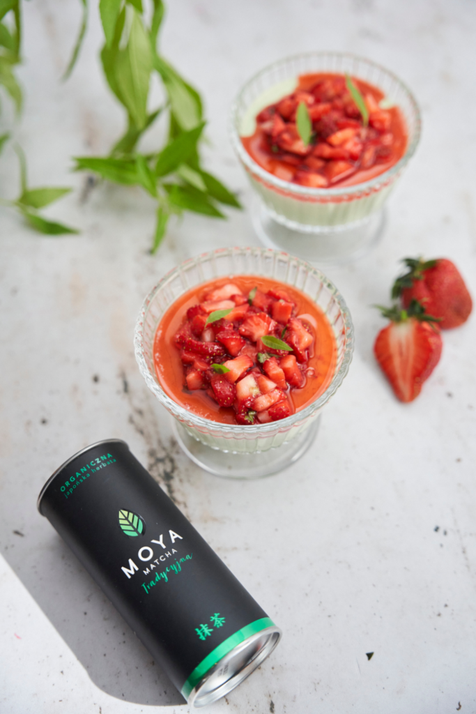 panna cotta z matchą i truskawkami