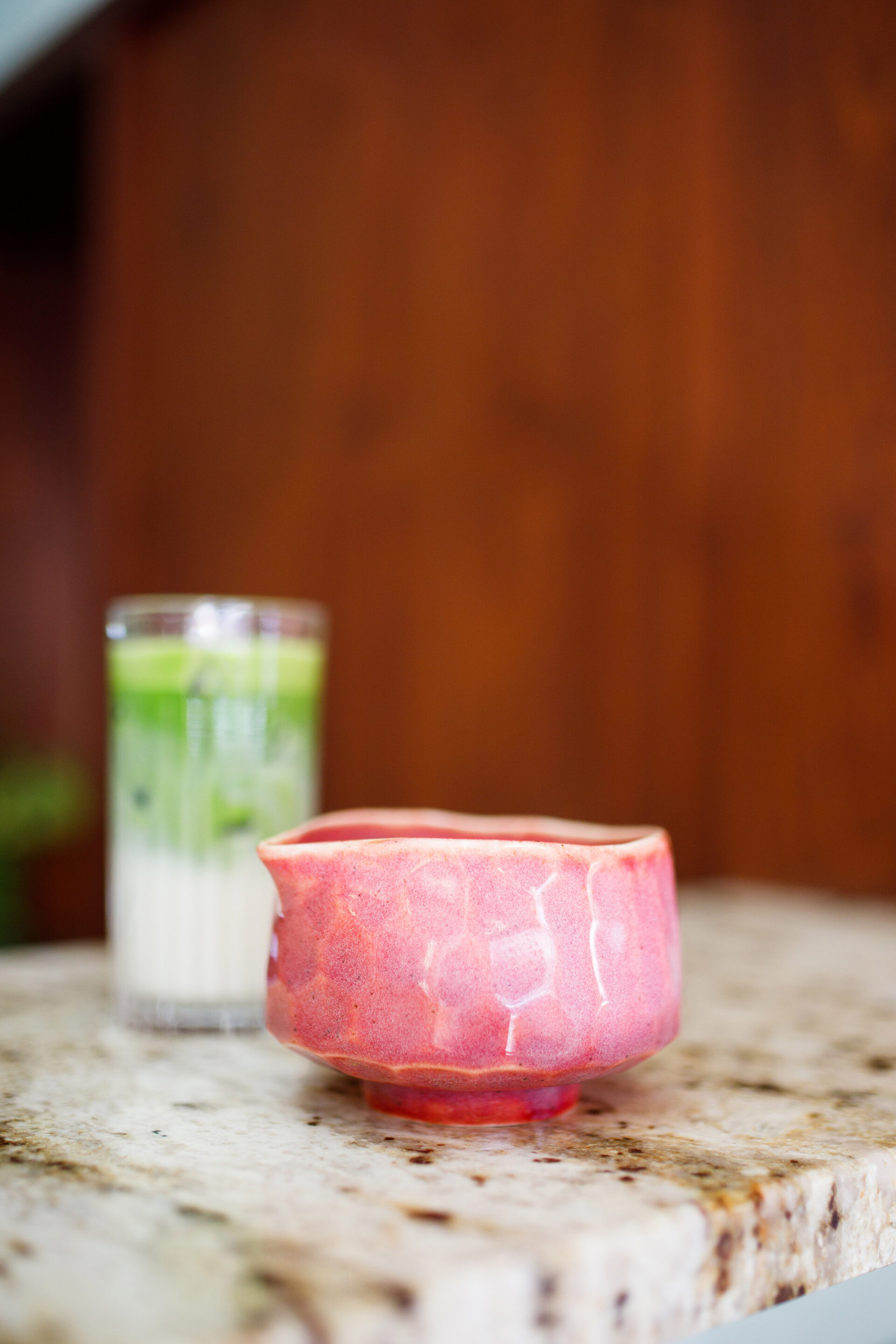 Jego nieregularne ścianki sprawiają, że idealnie leży w dłoni. Intensywny kolor czarki przykuwa wzrok, a dzióbek sprawia, że nie rozlejesz matchy przelewając ją do szklanki. Różowa barwa naczynia zainspirowała nas do nazwania go “Botan”, co w języku japońskim oznacza piwonię. W kulturze japońskiej piękno,elegancja i odporność piwonii przyniosły jej tytuł królowej kwiatów. W Japonii w XVIII wieku piwonia była szeroko rozpowszechnionym motywem w rzemiośle, powszechnie używanym jako element dekoracyjny gobelinów, obrazów, ceramiki i kimon. Często wykorzystuje się ją w Ikebanie, czyli japońskiej sztuce układania kwiatów.