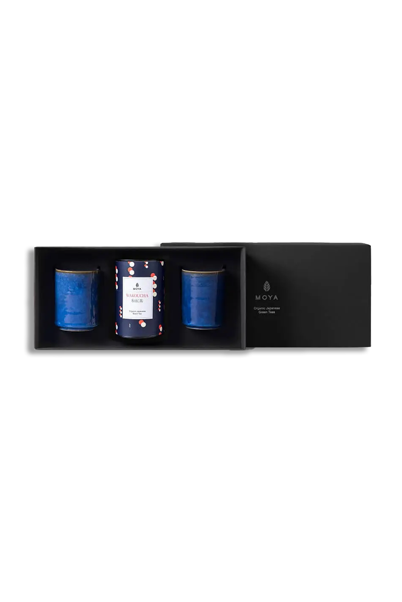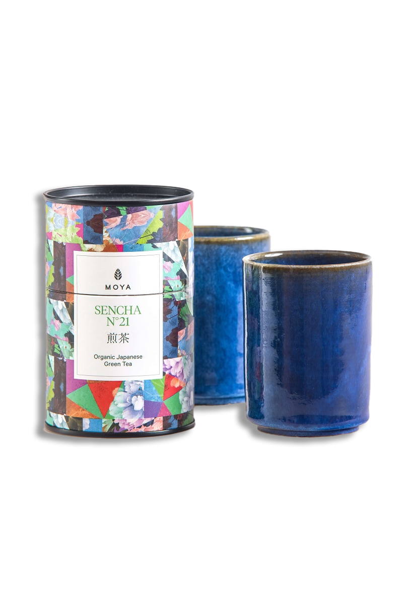 Dowolna herbata liściasta Moya w zestawie z dwoma ręcznie toczonymi kubkami ceramicznymi