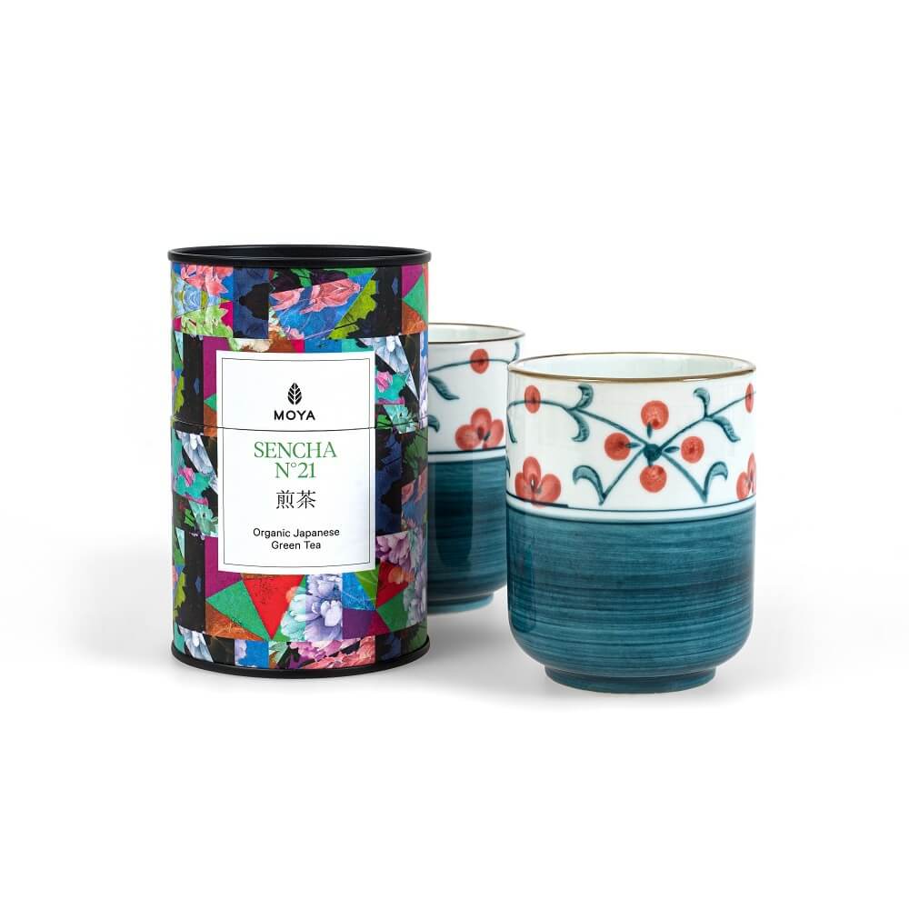 Dowolna herbata liściasta Moya, w zestawie z dwoma ręcznie toczonymi kubkami z gliny