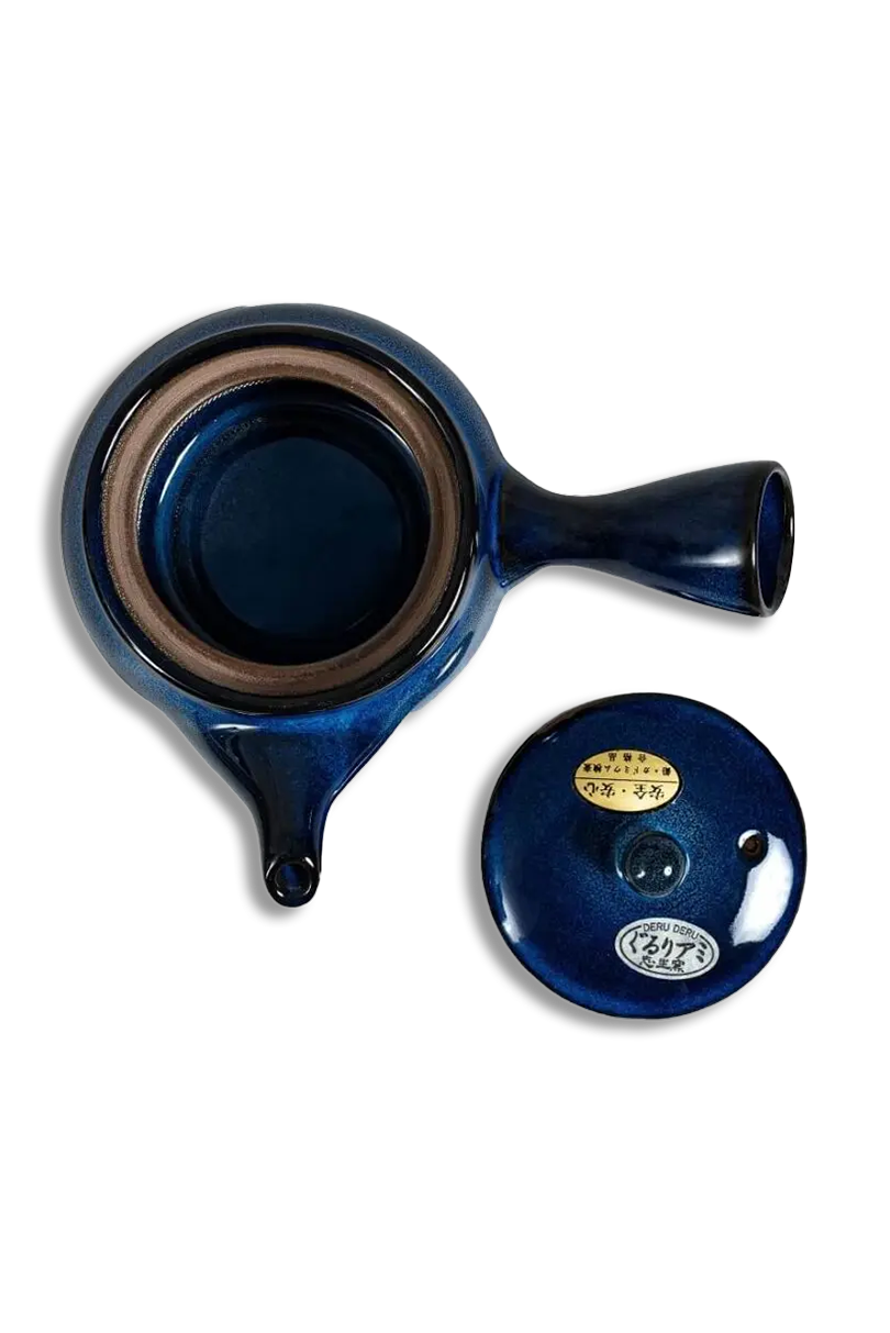 Kyusu Nami to tradycyjny japoński czajnik do herbaty liściastej z charakterystycznym uchwytem z boku. Słowo „kyusu” w dosłownym tłumaczeniu oznacza „dzbanek” lub „czajnik”, dlatego w Japonii pod tą nazwą można spotkać również inne rodzaje naczyń do parzenia herbaty. Kyusu Nami wykonany jest z gliny i odznacza się błyszczącym szkliwieniem w różnych odcieniach granatu. W środku znajduje się metalowe sitko zatrzymujące susz przy przelewaniu do kubka.