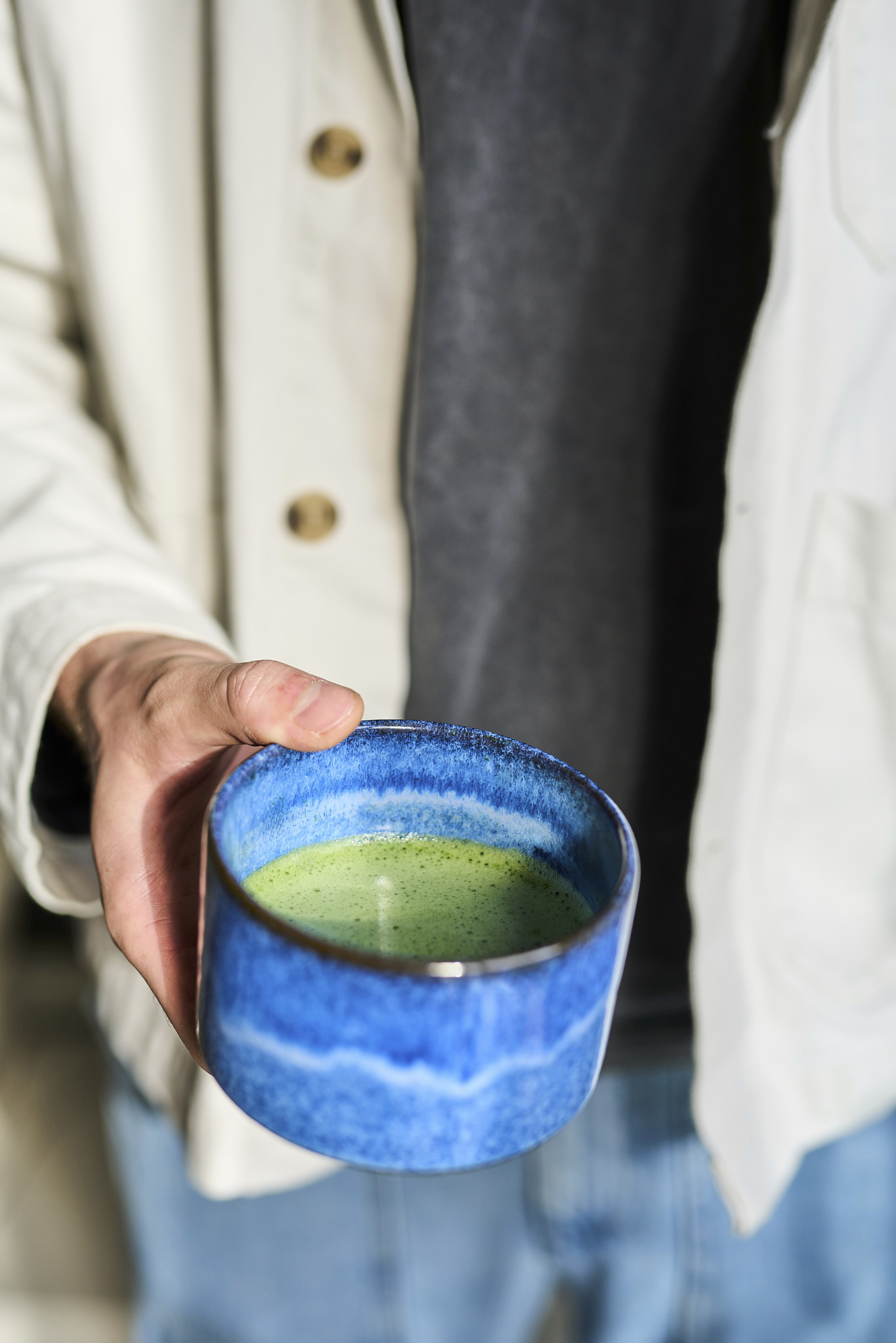 Matchawan Kaze został wykonany ręcznie na kole garncarskim z szarej gliny z delikatnym dodatkiem szamotu i szkliwa z glazury wykonanego zgodnie z wielowiekową japońską tradycją. Powstał w limitowanej serii KOOE dla MOYA wykonanej przez krakowskie studio ceramiki KOOE, którego wyroby charakteryzują się nie tylko pięknymi formami ale też wyjątkową wytrzymałością ze względu na wypał w wysokiej temperaturze. Każdy matchawan z tej serii to unikalne rękodzieło, jego wygląd i rozmiar może zatem delikatnie odbiegać od tego na zdjęciu. .