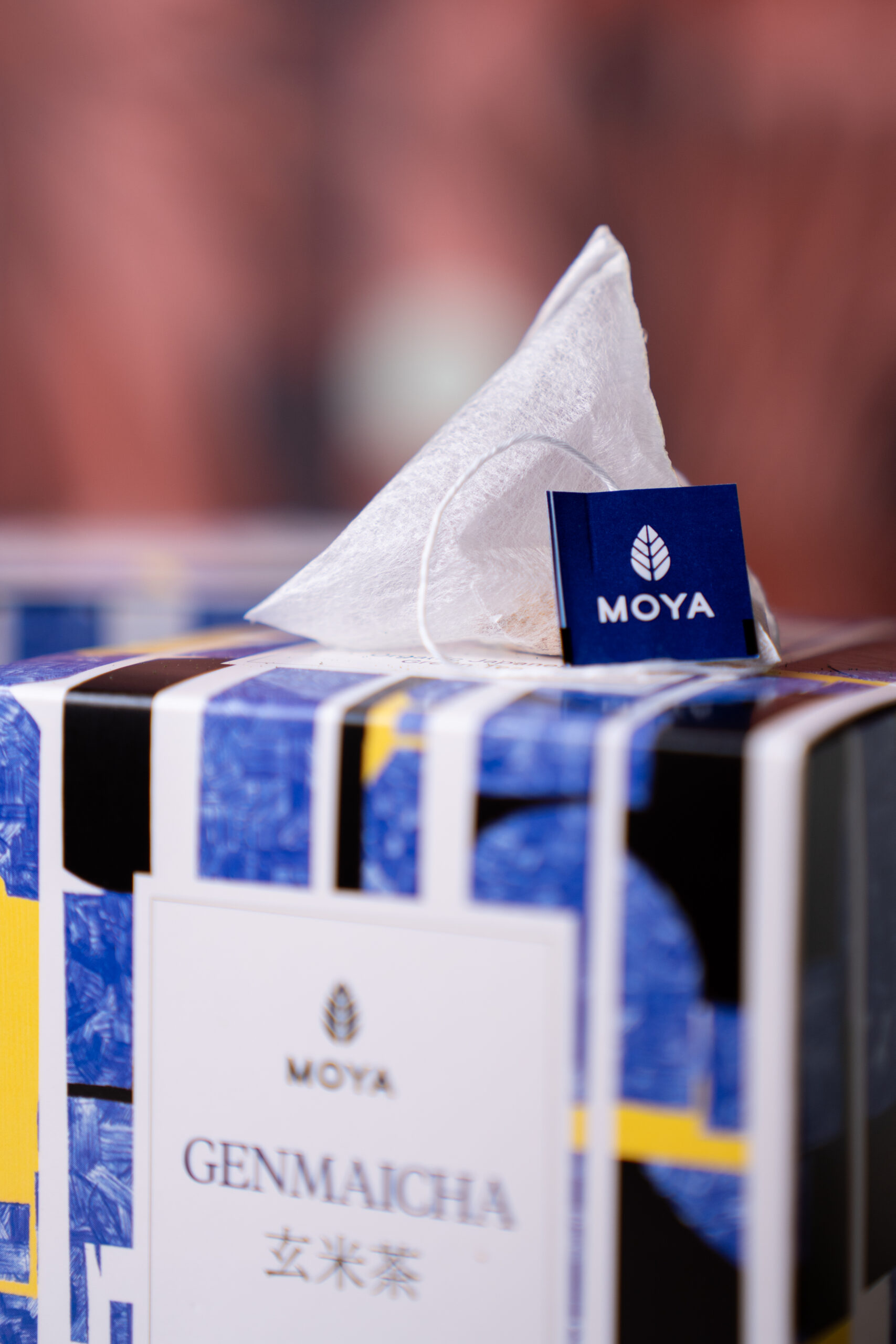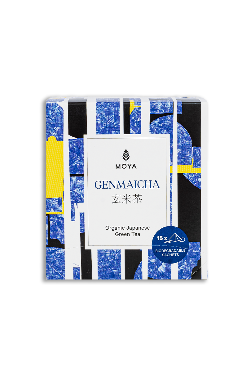 Moya Genmaicha składa się z liści organicznej senchy i ziarenek brązowego ryżu z organicznych upraw. Zanim ryż zostanie poddany suszeniu i prażeniu, jest specjalnie namaczany i parzony. Genmaicha to herbata o średniej zawartości kofeiny. Wspomaga układ trawienny, dlatego tradycyjnie podaje się ją do posiłków. Podczas długich okresów postu buddyjscy mnisi wspomagają się właśnie genmaichą.