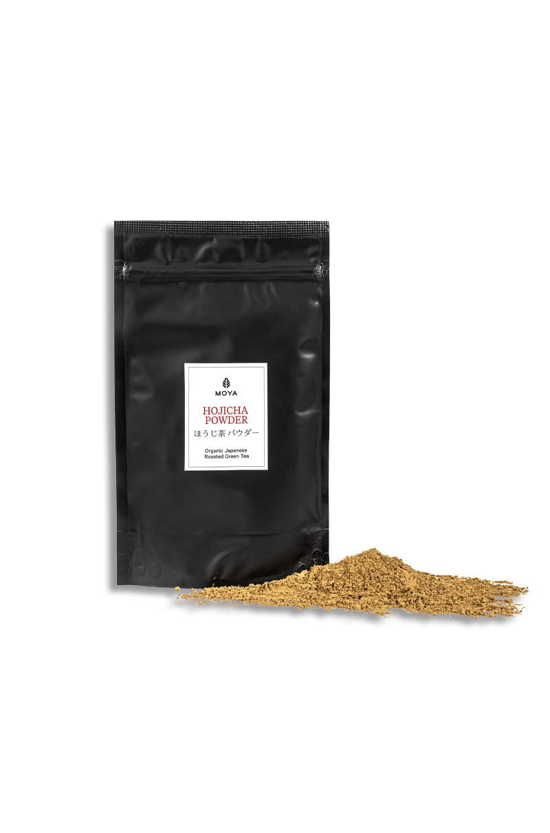 Hojicha powder powstaje w wyniku zmielenia prażonej zielonej herbaty liściastej hojichy. Ta młoda sproszkowana kuzynka matchy cieszy się coraz większą popularnością w Japonii. Podobnie jak w liściastej wersji, aromat jest lekko dymny, a smak orzechowo-karmelowy. Po zmieszaniu proszku z wodą otrzymuje się napój o barwie ciemnego brązu. Prażenie obniża poziom kofeiny w herbacie, przez co można cieszyć nią kubki smakowe bez względu na porę dnia. Hojicha jest również bogata w katechiny pomagające obniżyć ciśnienie, oraz wyregulować poziom cholesterolu i cukrów w organizmie.