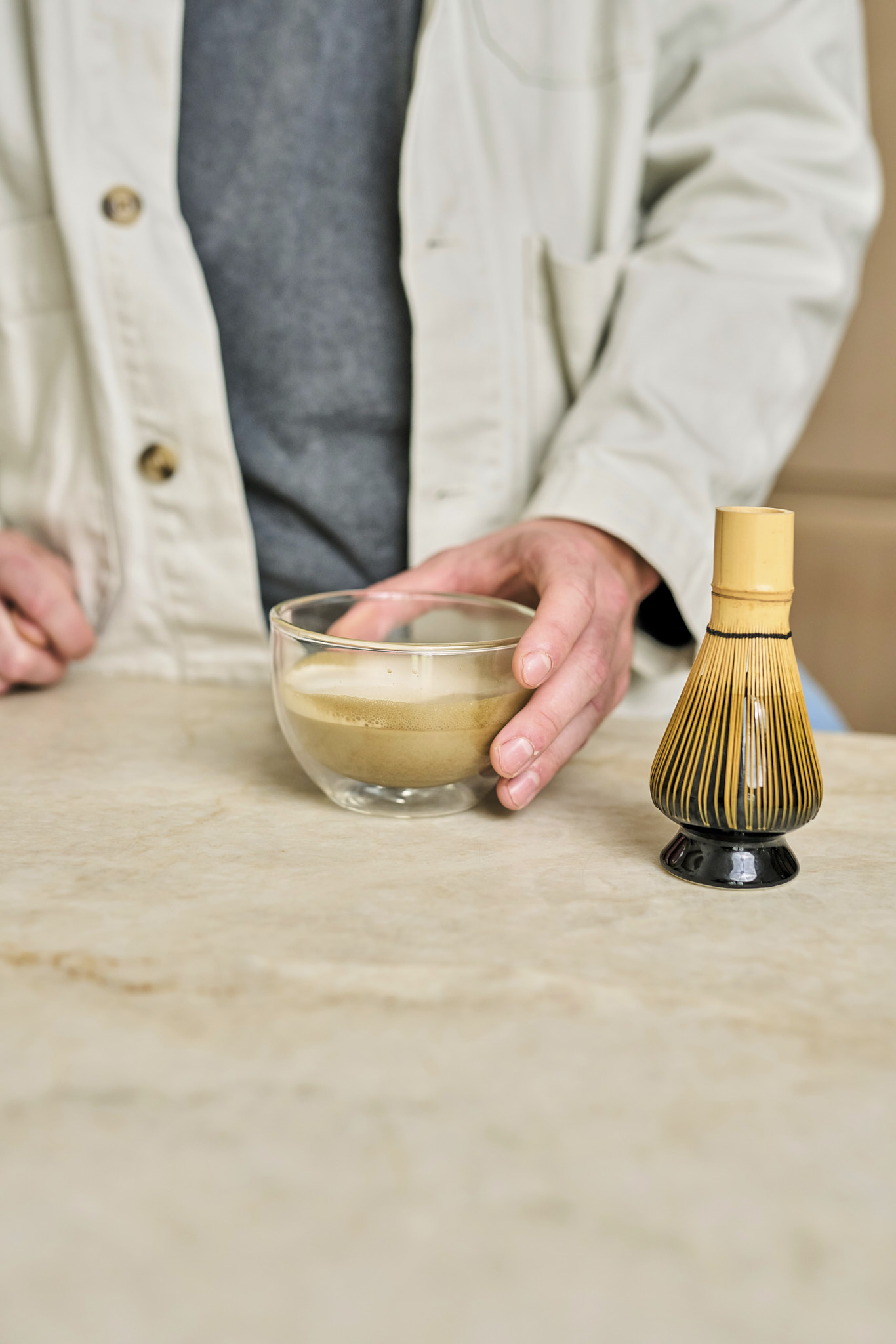 Hojicha powder to młodsza kuzynka matchy. Powstaje w wyniku zmielenia prażonej herbaty liściastej hojichy i charakteryzuje się orzechowo-karmelowym smakiem. Dzięki procesowi prażenia, poziom kofeiny w herbacie jest niższy, dlatego możesz cieszyć się nią o każdej porze dnia