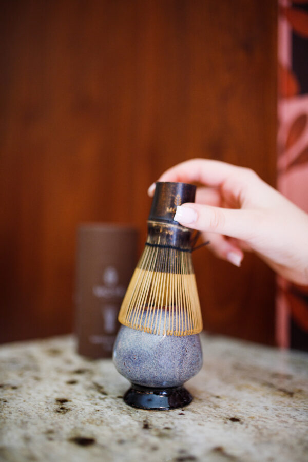 Podstawka pod chasen znana w Japonii jako naoshi to nieodłączny element zestawu do przygotowywania matchy każdego miłośnika tej herbaty. Wykonana z porcelany podstawka pomoże utrzymać delikatne wąsy chasenu w idealnym kształcie zapewniając mu większą trwałość i długowieczność. Naoshi jest jednym z narzędzi używanych od wielu wieków w tradycyjnej japońskiej ceremonii herbacianej. Dzisiaj coraz częściej można go zobaczyć na wyposażeniu kuchennym u osób ceniących dobrze przygotowaną herbatę matcha. Chasen widoczny na zdjęciu sprzedawany jest osobno.